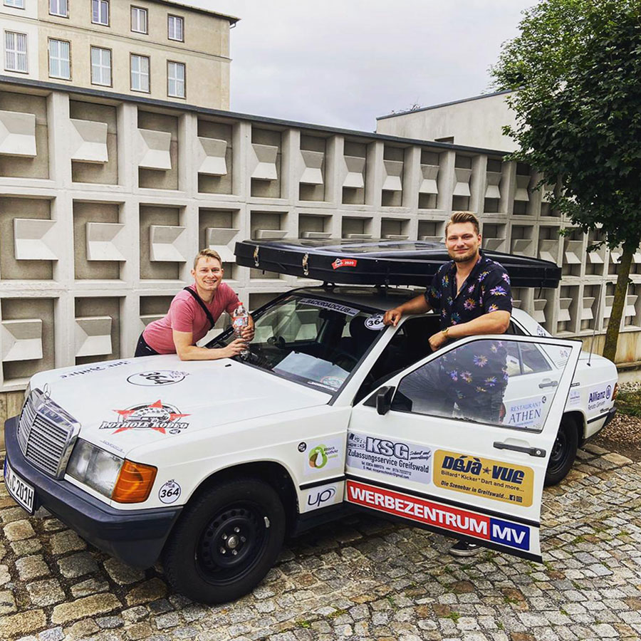 UP-Unternehmensberatung & Persönlichkeitskolleg a fait un don au TEAM autour d'Arne Allisat, en Mercedes-Benz, 190e, 40 ans. Les dons collectés par les TEAM POTHOLE-RODEO, organisés avec l'aide de l'association "Child-Care - Afrika-Entwicklungshilfe", sont utilisés pour mettre en place une école maternelle près d'Agadir, au Maroc. Mais tout le monde ne peut pas participer au POTHOLE-RODEO-RALLEY. Les véhicules RODEO sont soumis à une réglementation particulière. Ils peuvent avoir coûté 500 euros maximum et doivent parcourir au moins 500 000 km. Il n'y a pas de vainqueur au rallye, qui a lieu depuis 2014. L'itinéraire est le but. Les participants doivent se serrer les coudes et se soutenir mutuellement. Offrir des services ensemble pour aider les autres ! Des valeurs et des caractéristiques qui ne sont pas seulement décisives en rallye, mais aussi dans la vie de tous les jours !